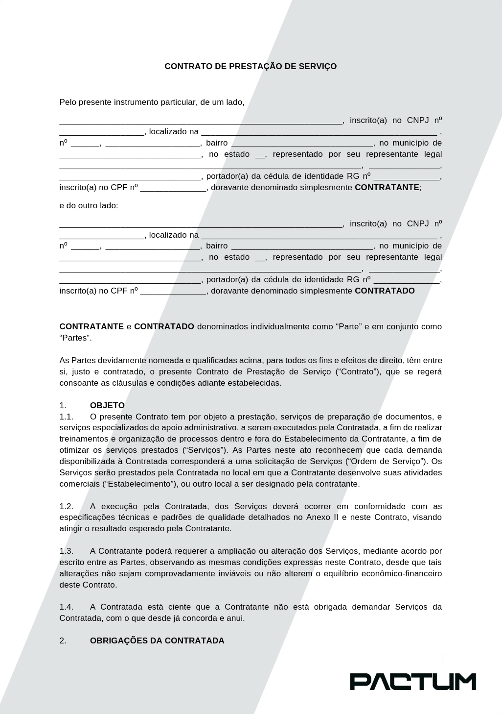 CONTRATO DE PRESTAÇÃO DE SERVIÇO - ASSINATURA